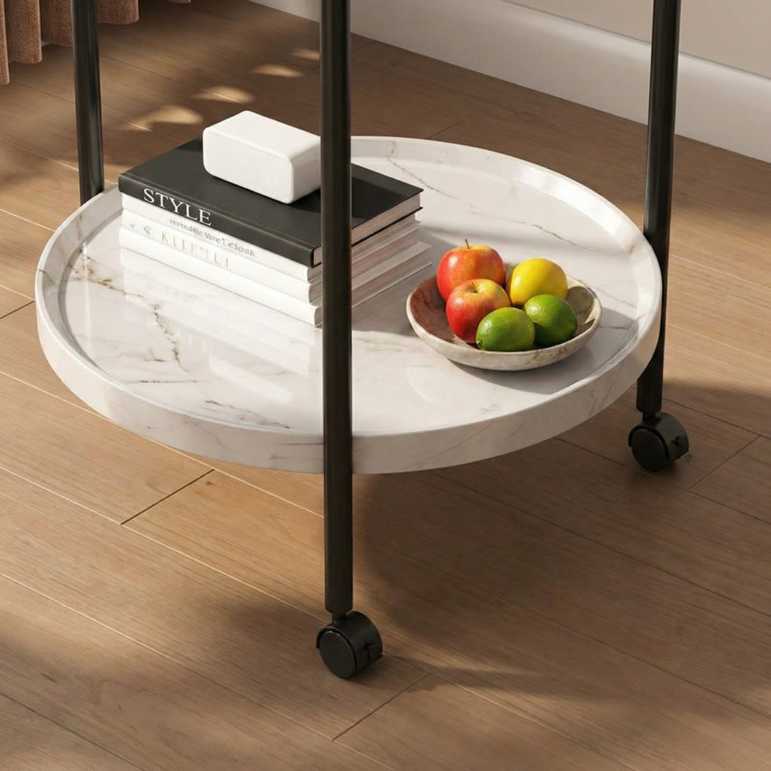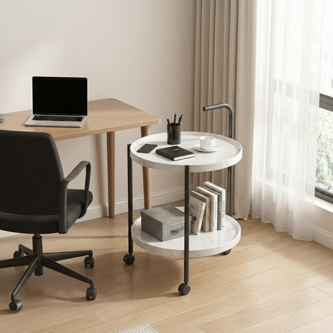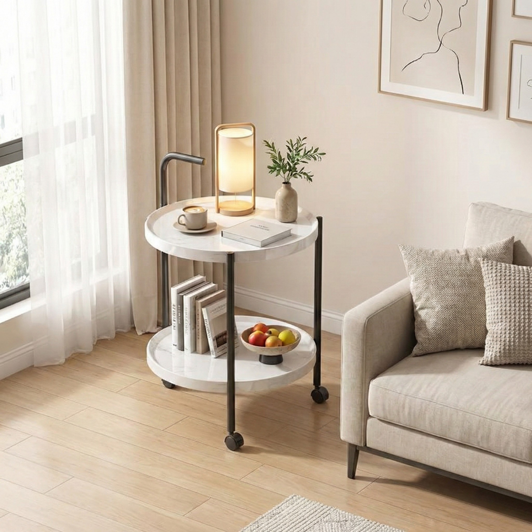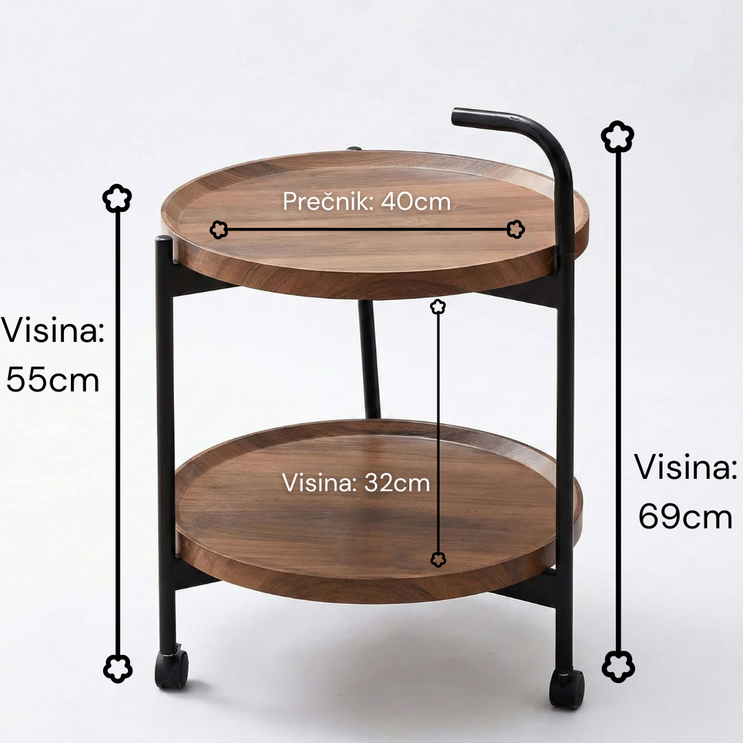 Zahvaljujući praktičnim točkićima, stočić se lako pomera bez napora. Postavite ga uz sofu dok pijete kafu, pomerite pored kreveta uveče ili ga koristite kao pomoćni sto u radnom prostoru – fleksibilnost je njegova najveća prednost.