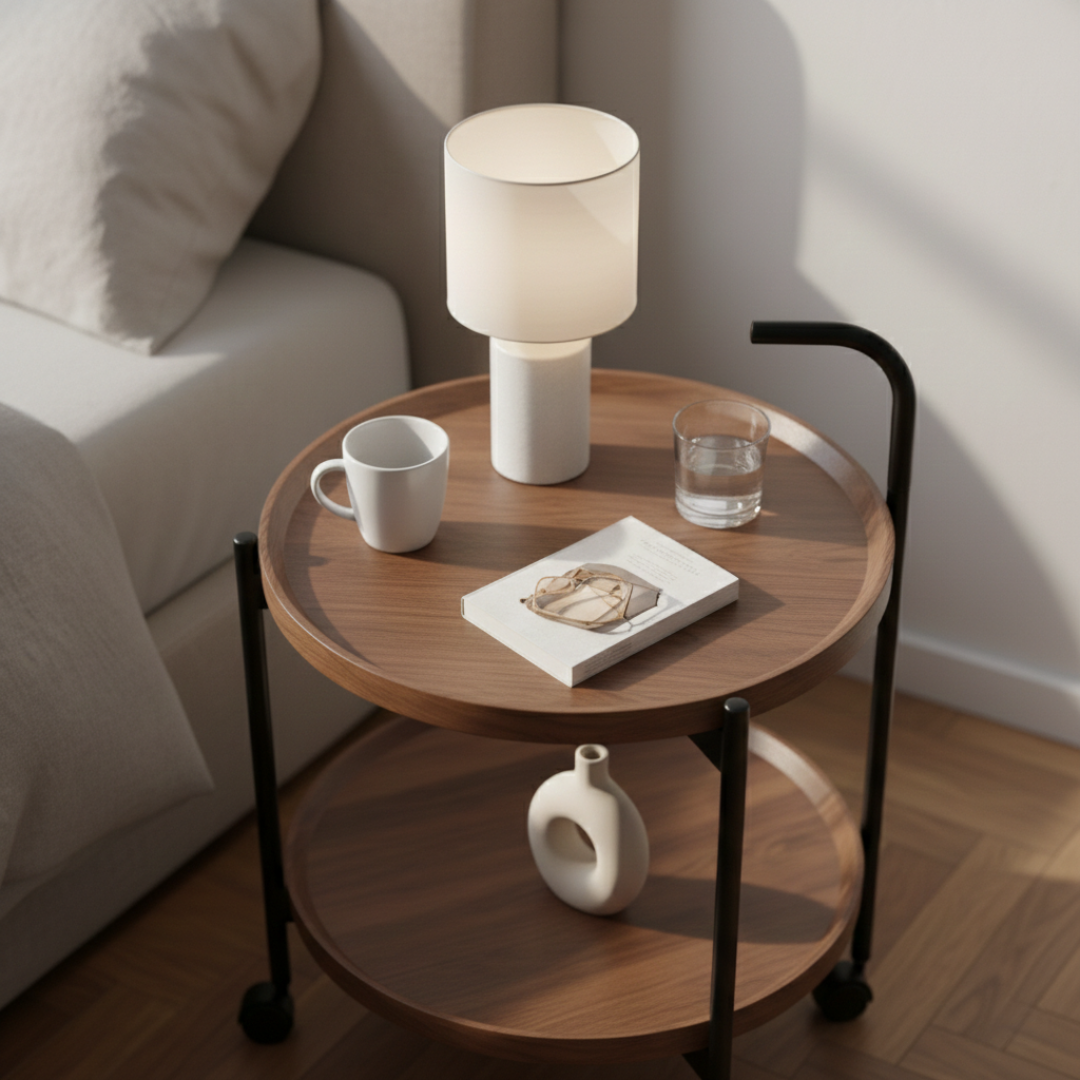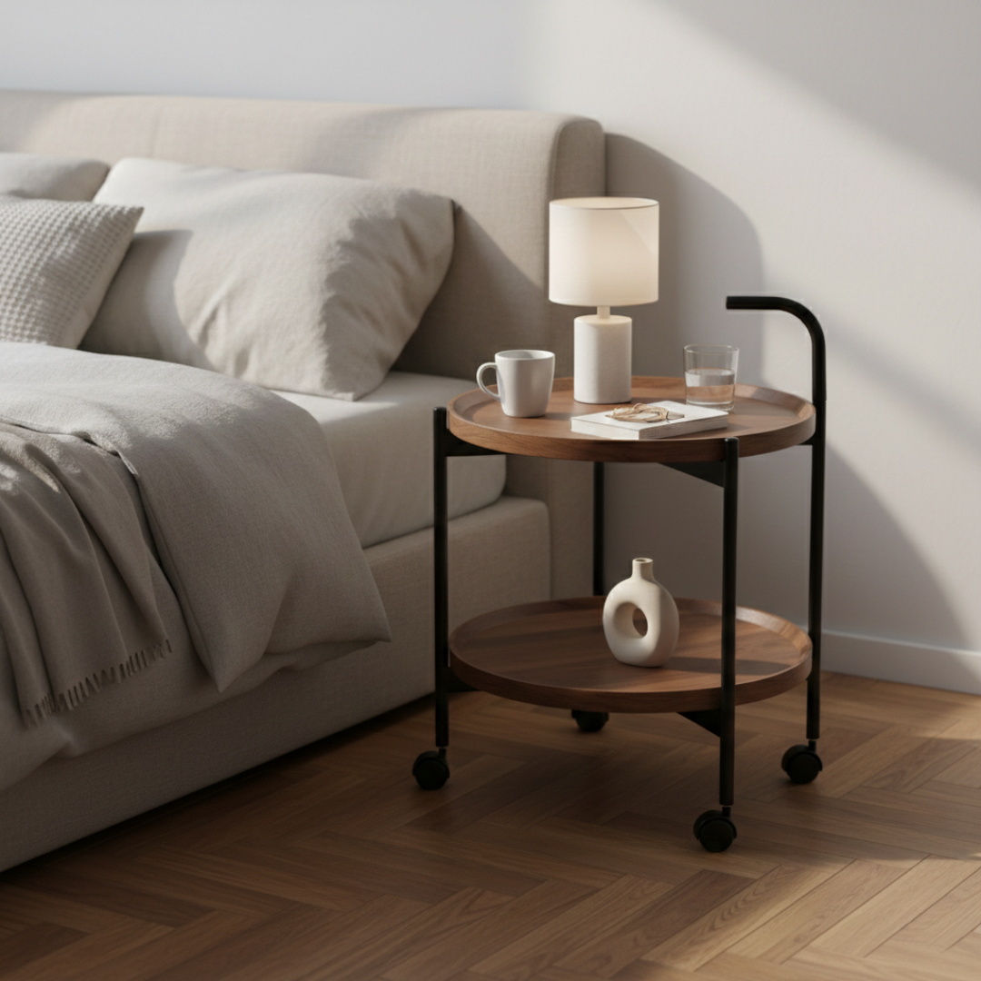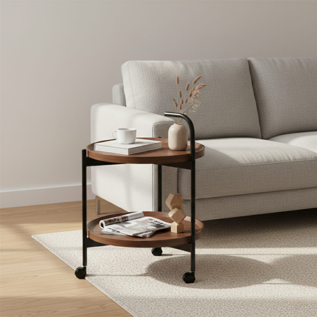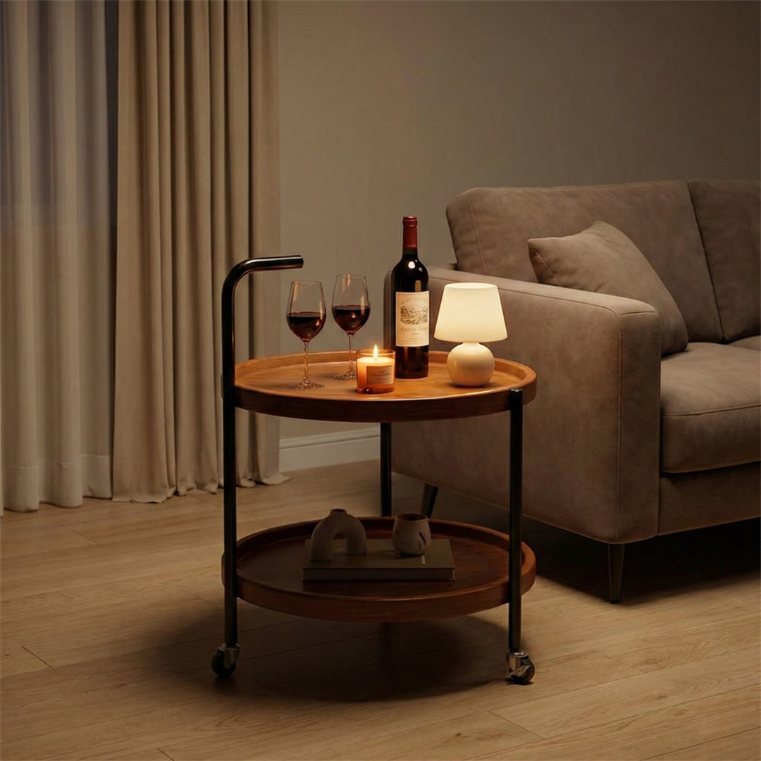 Zahvaljujući praktičnim točkićima, stočić se lako pomera bez napora. Postavite ga uz sofu dok pijete kafu, pomerite pored kreveta uveče ili ga koristite kao pomoćni sto u radnom prostoru – fleksibilnost je njegova najveća prednost.